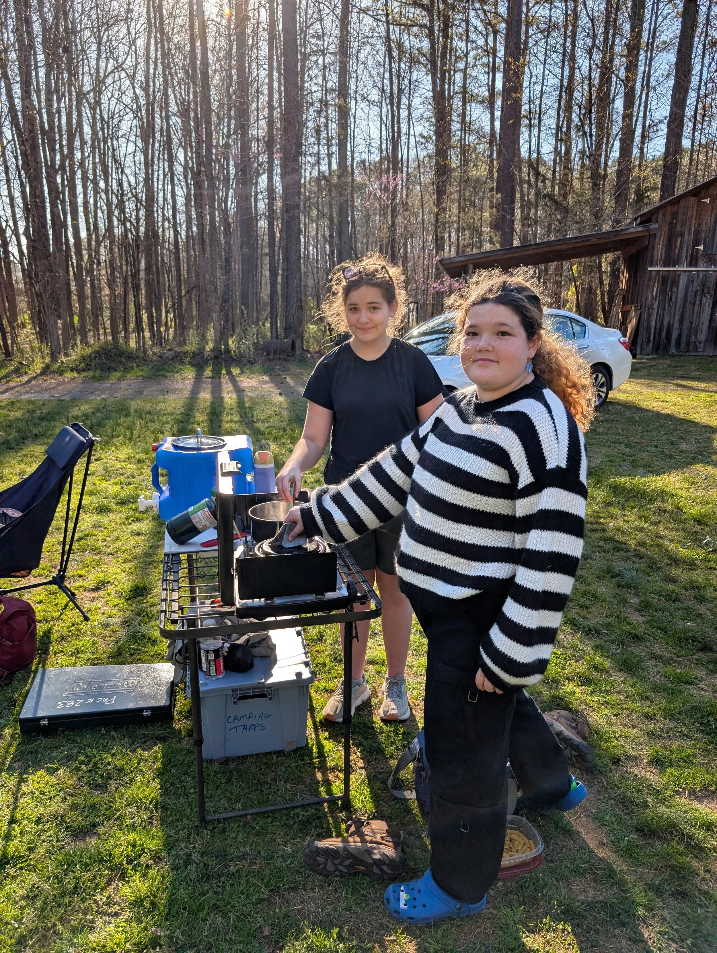 Axolotl campout and cleanup Carrboro event from March 22, 2025. The scouts worked on rank advancements, in particular practicing cooking, and enjoyed time helping to clean up the Chapel Hill-Carrboro watershed.